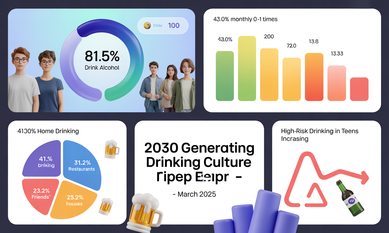 - 음주 비율: 2030세대의 81.5%가 음주를 하고 있음 (2025년 3월 인크로스 조사)