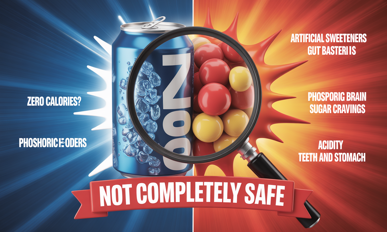 많은 분들이 "제로 콜라는 괜찮지 않나요?"라고 묻습니다. 안타깝게도 제로 칼로리 탄산음료도 완전히 안전하지 않습니다.